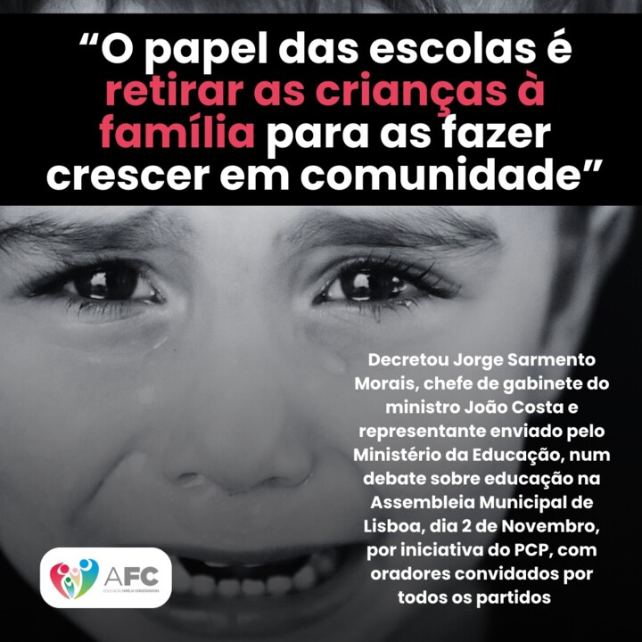 Sim. É mesmo isso. Aliás, a colunista do Observador, Margarida Bentes Penedo, já nos tinha dado conta das intenções socialistas ao citar as palavras do chefe de gabinete do ministro João Marques da Costa e representante enviado pelo Ministério da Educação, Jorge Sarmento Morais: «O papel da escola é retirar as crianças à família para as fazer crescer na comunidade.»