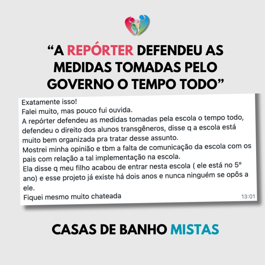 Não, os pais não foram ouvidos e ainda foram repreendidos PELA REPÓRTER da RTP.