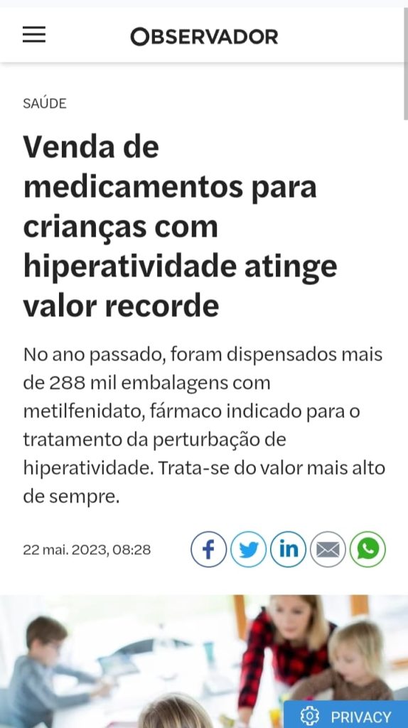 É hora dos pais pararem de entupir os seus filhos com medicamentos, só para ficarem de consciência tranquila e continuarem a deixá-los diante dos écrans e aos cuidados de terceiros ao longo da vida;