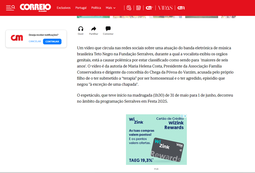 - Espero que os pais vejam e rejeitem que estes espectáculos, absolutamente decadentes e pornográficos, possam ser exibidos aos seus filhos a partir dos 6 anos.
